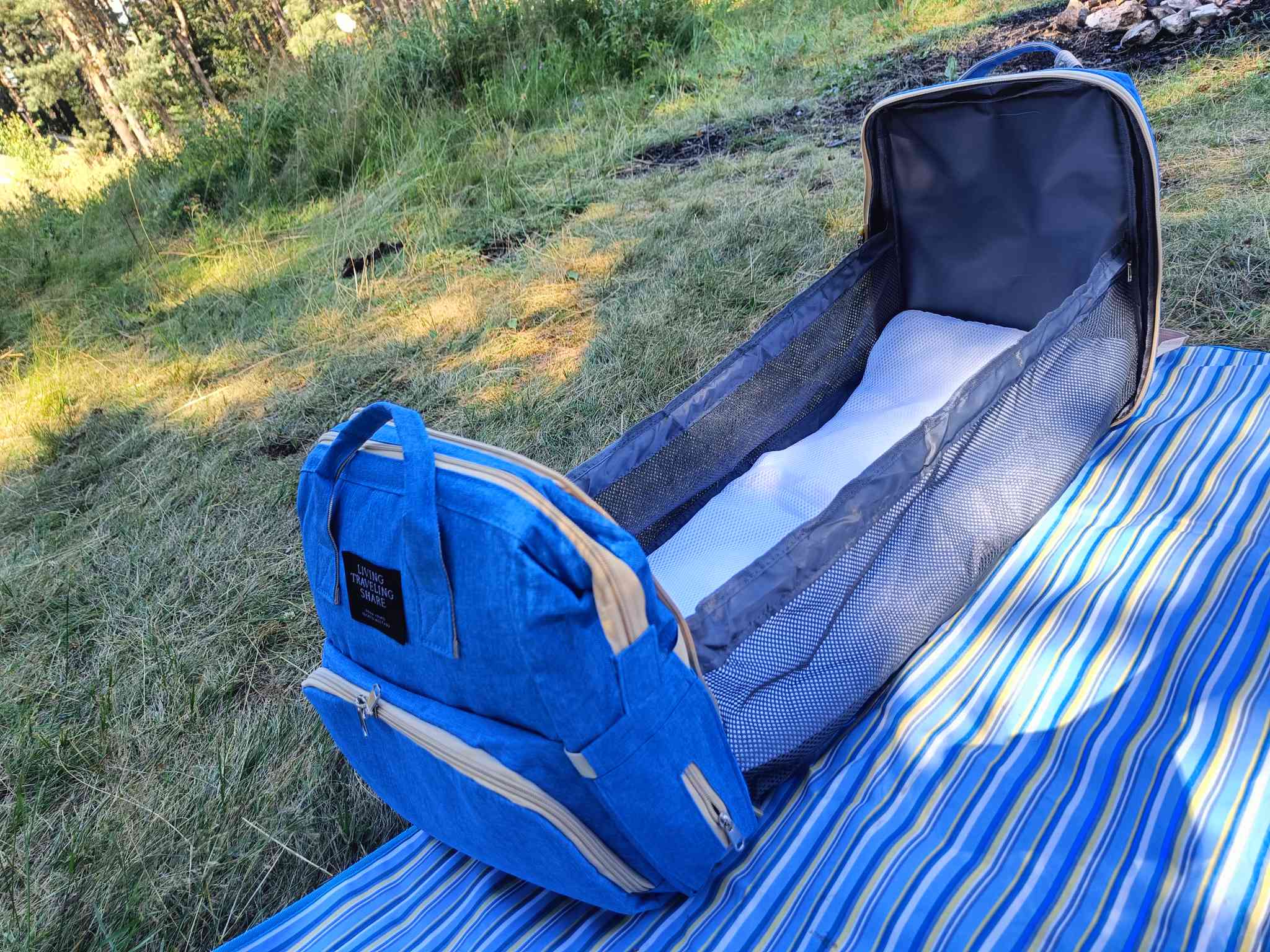 Нашата раница "Мама и бебе" е перфектното решение за модерните майки, които търсят удобство и стил в едно. Тя не е просто раница - това е идеалният спътник за всички вашите приключения с бебето. Използвайте я като раница за гърба, чанта за количката, раница за рамото или дори като детско легло навсякъде, където ви отведе животът с бебето ви.